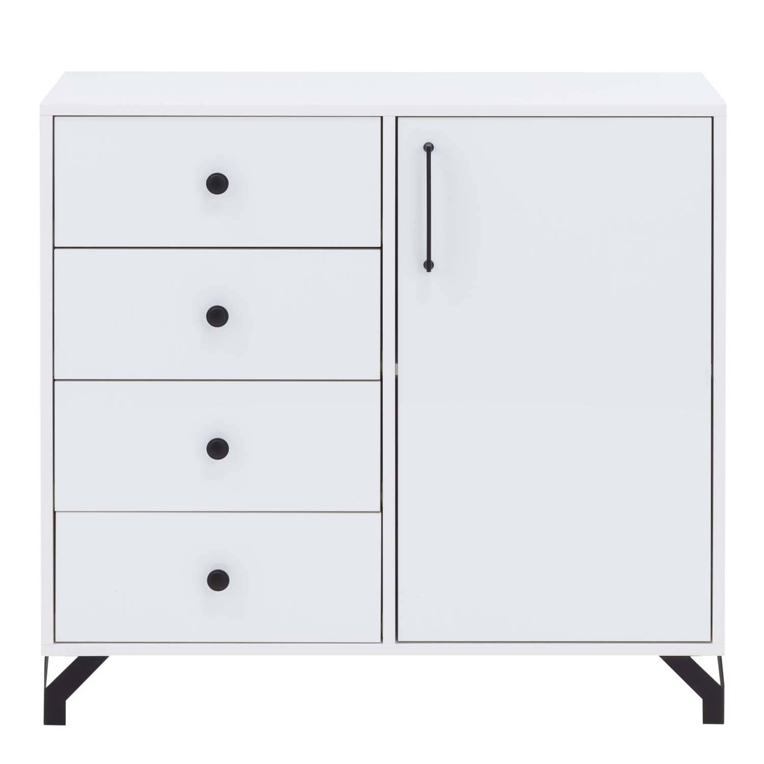Komoda Bergen BE6 má praktické vnútorné rozloženie, v ľavej časti sú zásuvky a v pravej časti sú dvierka.