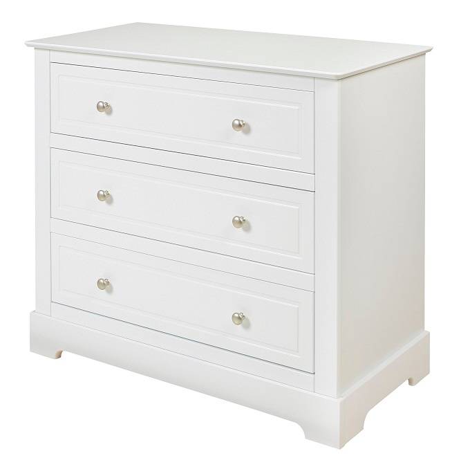 lasická a elegantná línia detského nábytku so sviežim a jemným vzhľadom. Kolekcia je vo svetlých farbách a nádherné strieborné rúčky dodávajú jej celkovému vzhľadu nádych sofistikovanosti. Komoda je vyrobená z vysoko kvalitnej MDF dosky natretej bielou farbou bezpečnou pre deti a nábytkovej dosky (bočné a vnútorné časti). Na zvýšenie bezpečnosti a komfortu pri používaní sa používajú bezpečné a spoľahlivé vodiace lišty vybavené prídavným zatváracím systémom.