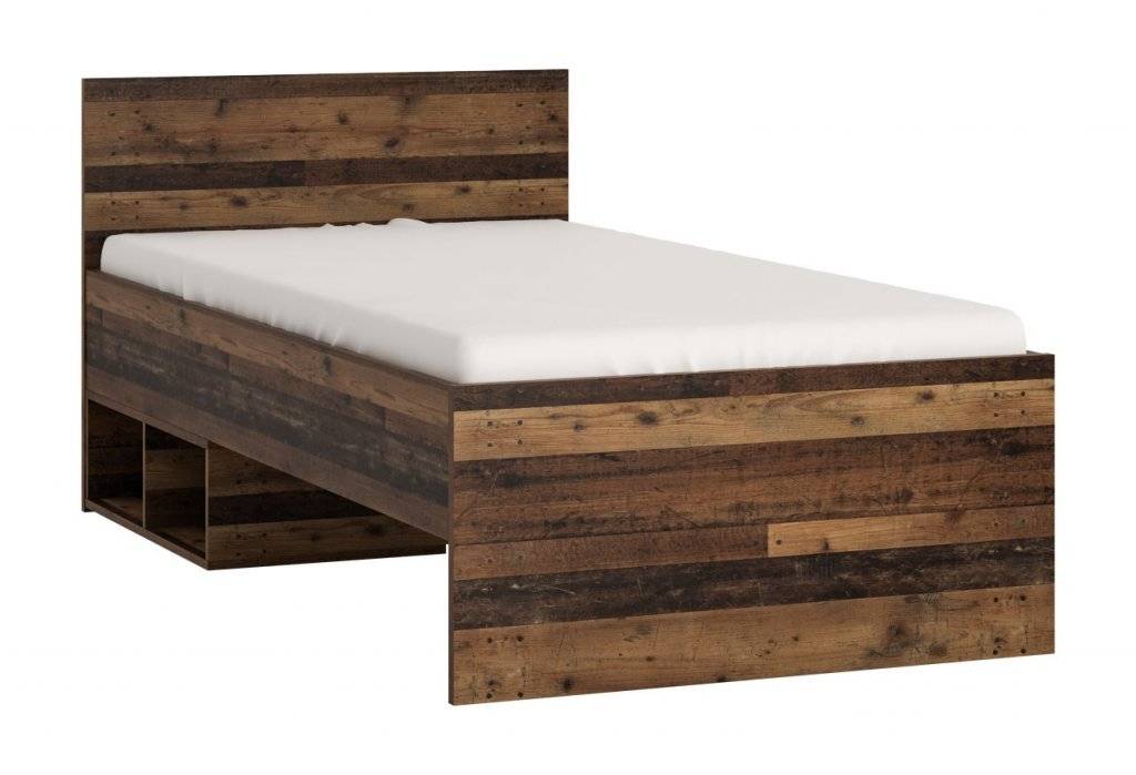 Posteľ NUBZ04 patrí do očarujúcej kolekcie nábytku NUBI, ktorej charakteristickým znakom je dekor pripomínajúci recyklované drevo s imitáciou betónu a staromódne úchytky.
