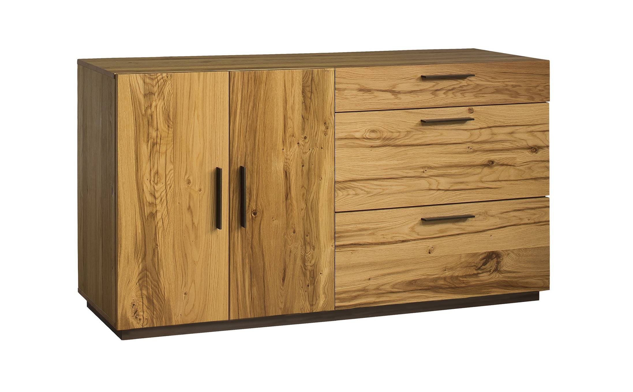 MORENO je kolekcia pri ktorej sú použité unikátne ručne opaľované dýhy zo starých dubov rastúcich vo vysokohorskej mikroklíme. Tento nábytok patrí medzi luxusné typy moderného prevedenia nábytku. Jedinečné spojenie naturálneho olejovaného farebného prevedenia kombinovaného s čiernou farbou tiahnú tento sektor k loftovému typu nábytku. Zaujímavo riešené prvky vytvoria vo Vašej obývačke alebo jedálni jedinečné miesto, ktoré bude pútať pozornosť aj o niekoľko rokov, pretože spojenie čiernej farby a prírodného dekoru vždy bolo a aj bude jedinečným spojení v oblasti bytového dizajnu. Nábytkom môžete kompletne vybaviť Vašu obývačku alebo spáleň a komody môžete využiť aj v predsieni, vstupnej chodbe alebo v spálnni. Skutočný dizajnérsky skvost - taký je nábytok MORENO. LED osvetlenia sklenených častí doťahujú celkový pohľad na tento luxusný nábytok.