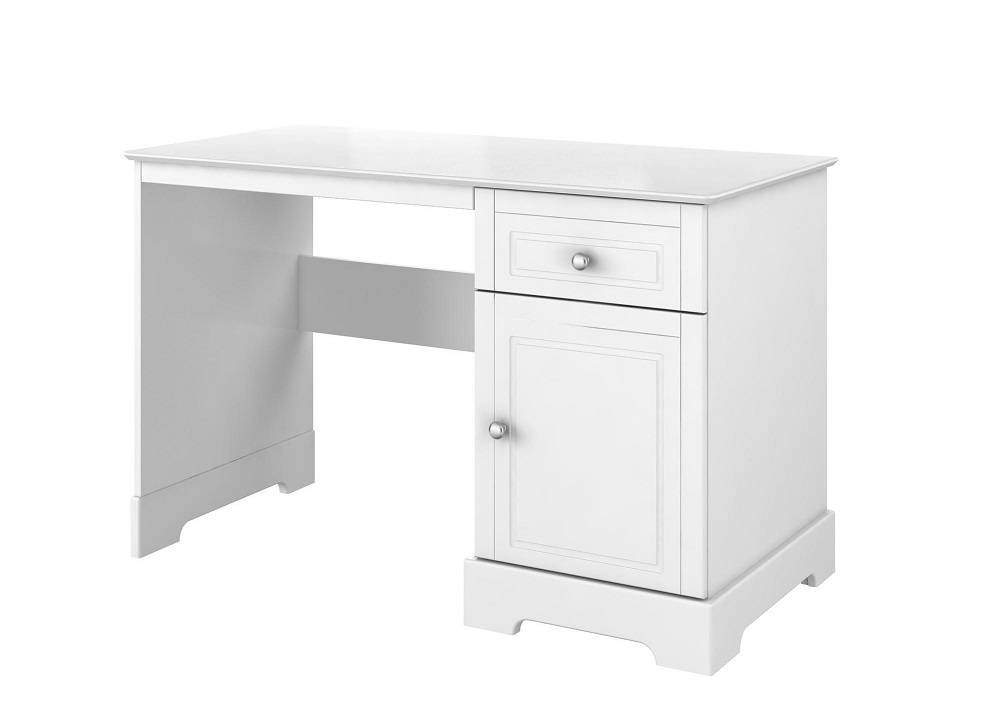 lasická a elegantná línia detského nábytku so sviežim a jemným vzhľadom. Kolekcia je vo svetlých farbách a nádherné strieborné rúčky dodávajú jej celkovému vzhľadu nádych sofistikovanosti. Písací stôl je vyrobený z vysoko kvalitnej dosky MDF natretej bielou farbou bezpečnou pre deti (vrchná časť, čelné strany, podstavec) a nábytkovou doskou (vnútorné časti). Na zvýšenie bezpečnosti a pohodlia pri používaní sa používa bezpečné a spoľahlivé vedenie.