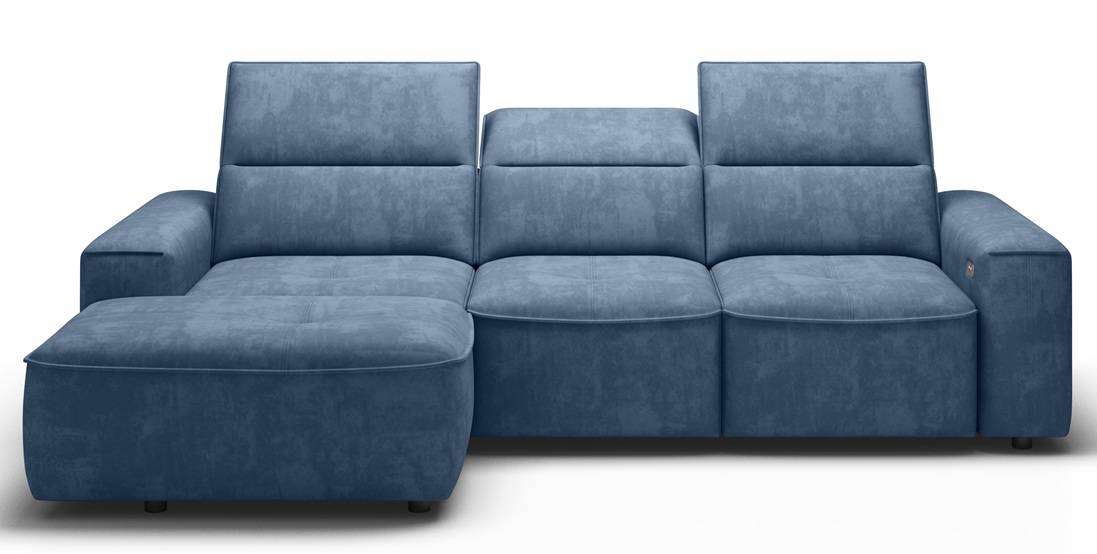 Elegantná sedacia súprava s jemnými líniami a zaujímavým prešitím na sedáku - taká je sedačka z kolekcie CHANDLER MINI . Regulovateľné záhlavné opierky zvyšijú komfort sedenia a spolu s HR penou a vlnitými pružinami maximalizujú celkové pohodlie pri sedení. Regulovať je možné aj hĺbku sedu a to prostredníctvom elektrického spínača, ktorý vysúva a zasúva sedák, čím sa zvyšuje priestor na odpočinok alebo tak môžete vytvoriť príležitostné lôžko na spanie. nenápadný úložný priestor je ukrytý v otomane a je vyklápateľný, preto sa doň dostanete veľmi ľahko a môžete tam uložiť všetky deky, vankúše alebo iné veci. Luxusné prevedenie sedačky je doplnené o zaujímavý prvok a to poloblúkové ukončenie sedu, ktoré je prešité a dokonale ukončuje celkový dizajn tejto sedacej súpravy.