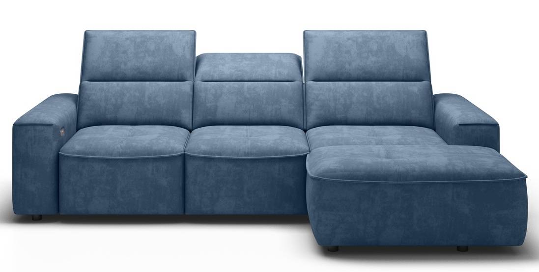 Elegantná sedacia súprava s jemnými líniami a zaujímavým prešitím na sedáku - taká je sedačka z kolekcie CHANDLER MINI . Regulovateľné záhlavné opierky zvyšijú komfort sedenia a spolu s HR penou a vlnitými pružinami maximalizujú celkové pohodlie pri sedení. Regulovať je možné aj hĺbku sedu a to prostredníctvom elektrického spínača, ktorý vysúva a zasúva sedák, čím sa zvyšuje priestor na odpočinok alebo tak môžete vytvoriť príležitostné lôžko na spanie. nenápadný úložný priestor je ukrytý v otomane a je vyklápateľný, preto sa doň dostanete veľmi ľahko a môžete tam uložiť všetky deky, vankúše alebo iné veci. Luxusné prevedenie sedačky je doplnené o zaujímavý prvok a to poloblúkové ukončenie sedu, ktoré je prešité a dokonale ukončuje celkový dizajn tejto sedacej súpravy.