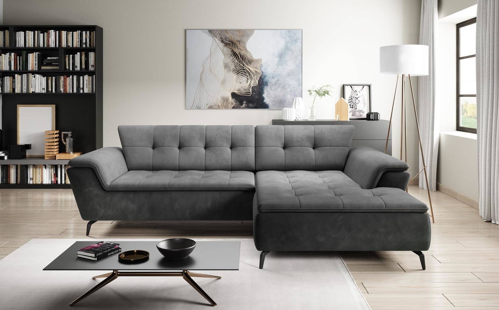 Luxusná sedacia súprava COLORADO je ideálnym riešením do moderných loftových priestorov, v tmavých farebných prevedeniach nude sedacia súprava vyzerať perfektne, no samozrejme vďaka svojmu dizajnu sa na sedačku budú hodiť aj iné farebné prevedenia. Kovové nohy a ozdobné šitie na vankúšoch a sedákoch spolu s hranatými prvkami radia tento model k modernej rade v oblasti bytového dizajnu. Sedacia súprava je vybavený rozkladaním typu automat, vďaka ktorému sedaciu súrpavu v priebehu niekoľkých sekúnd premeníte na lôžko k príležitostnému spánku. Úložný priestor sa nachádza pod sedacou časťou a dostanete sa k nemu pozdvihnutím a preklopením sedáka.