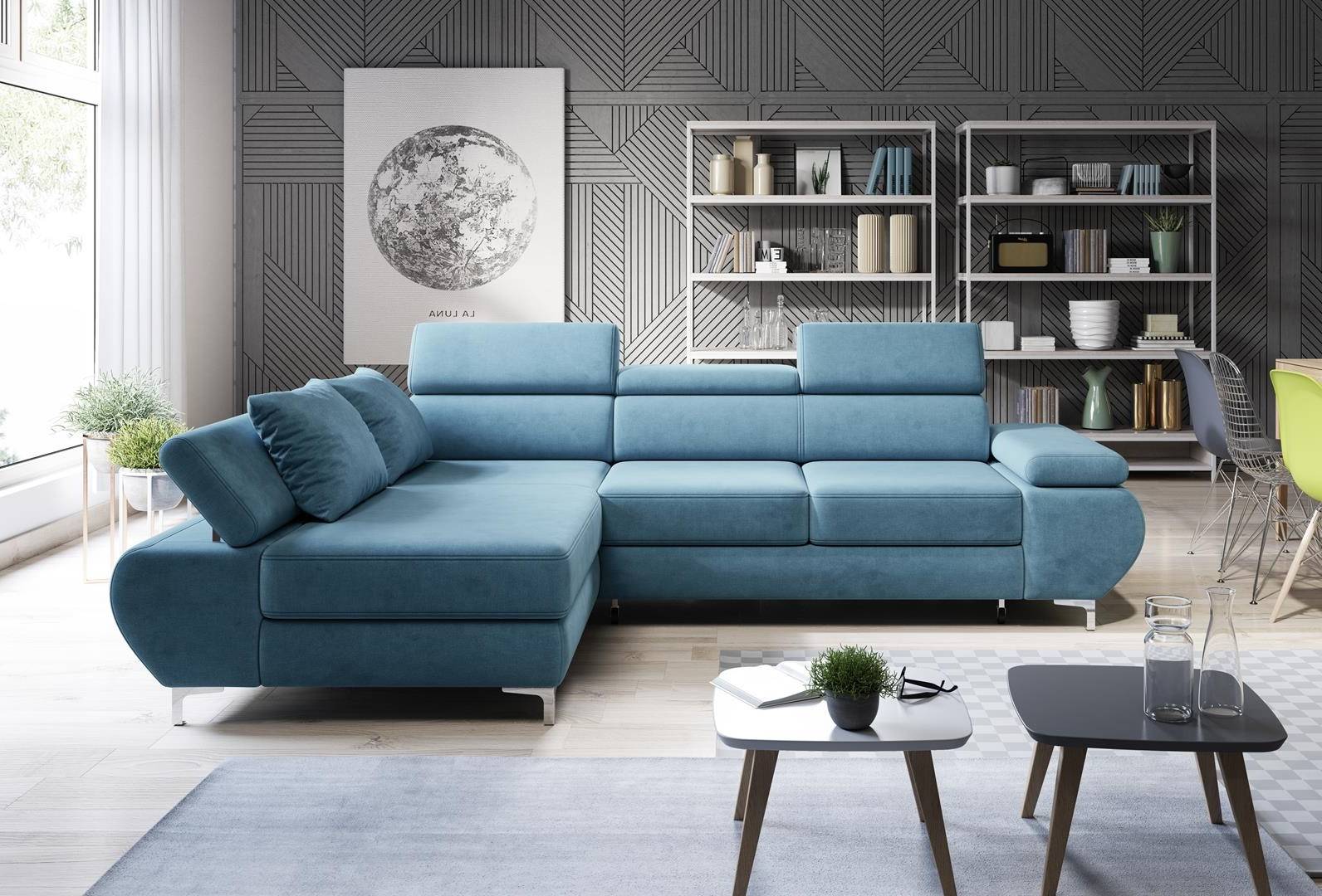 Sedacia súprav MERIDA MINI Vám dovolí nastaviť si sedenie presne podľa svojej predstavy. Regulovateľné, teda výškovo nastaviteľné opierky halvy a taktiež opierky rúk umožnia nastaviť si polohu sedu podľa vlastnej potreby. Sedačka je vybavená vozíkovým rozkladaním za pomoci ktorého pripravíte lôžko na príležitostné prenocovanie aj pre nečakaného hosťa. Úložný priestor sa nachádza v otomane sedačky.
