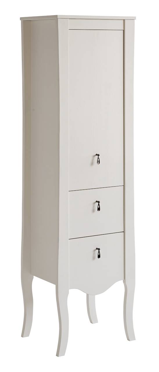 • Kúpeľňová skrinka ELISABETH s dvoma zásuvkami a dvierkom.