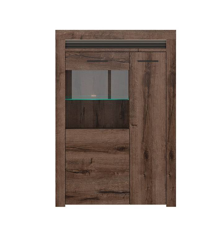 Ľavá časť (čelný pohľad) obsahuje sklené dvierka. Vo vnútri sa nachádzajú 3 police, z toho 1 polica je sklená, na ktorú si môžete vystaviť dekoračné predmety.