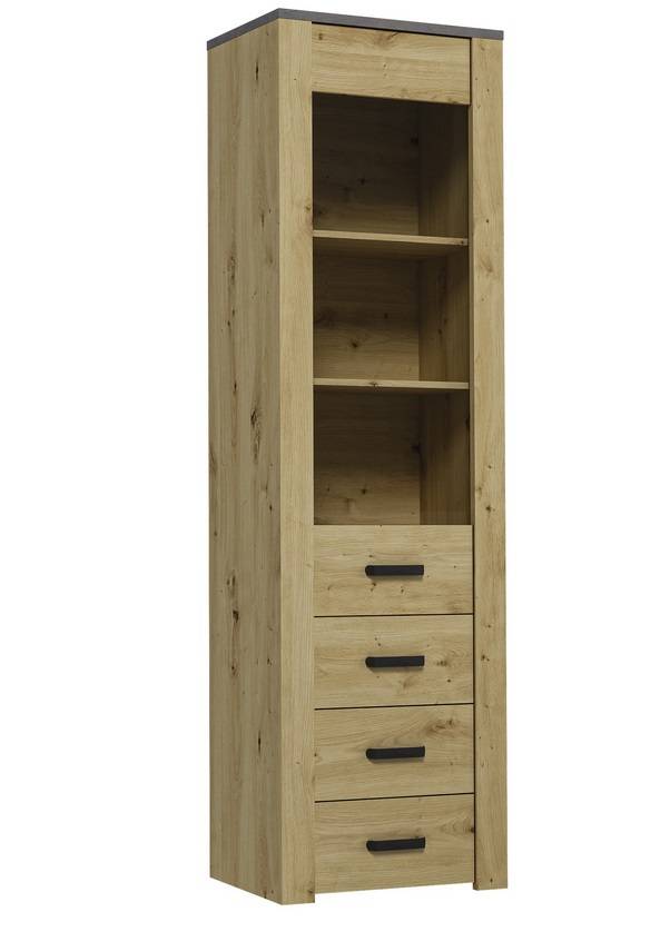 • Vitrína XL W1D je vybavená štyrmi zásuvkami a jednými dvierkami s policami vo vnútri.