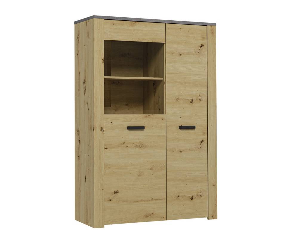 • Vitrína XL W2D je vybavená dvomi dvierkami s policami vo vnútri a jednou poličkou.